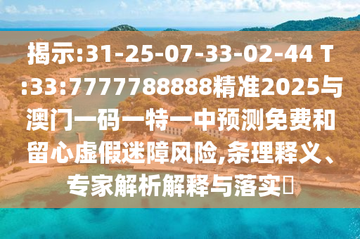 31-25-07-33-02-44 T:33:7777788888精準(zhǔn)2025與澳門一碼一特一中預(yù)測(cè)免費(fèi):條理釋義、專家解析解釋與落實(shí)?