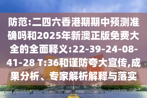 二四六香港期期中預(yù)測準確嗎和2025年新澳正版免費大全的全面釋義:22-39-24-08-41-28 T:36的成果分析、專家解析解釋與落實