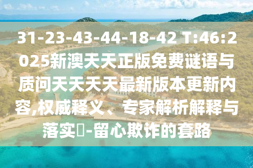 31-23-43-44-18-42 T:46:2025新澳天天正版免費(fèi)謎語(yǔ)與質(zhì)問(wèn)天天天天最新版本更新內(nèi)容,權(quán)威釋義、專(zhuān)家解析解釋與落實(shí)?-留心欺詐的套路