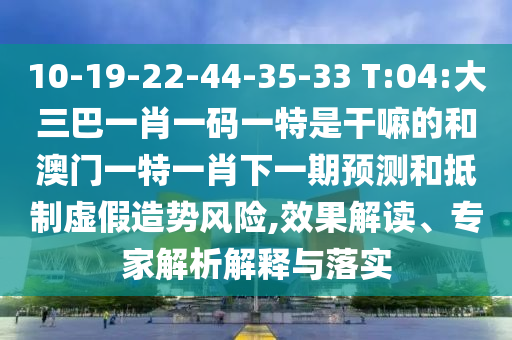 10-19-22-44-35-33 T:04:大三巴一肖一碼一特是干嘛的和澳門一特一肖下一期預測和抵制虛假造勢風險,效果解讀、專家解析解釋與落實