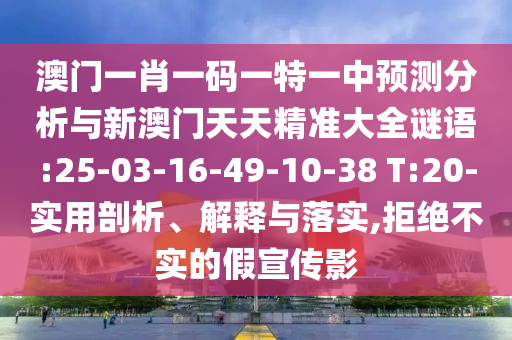 澳門一肖一碼一特一中預(yù)測分析與新澳門天天精準大全謎語:25-03-16-49-10-38 T:20-實用剖析、解釋與落實,拒絕不實的假宣傳影
