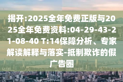 揭開:2025全年免費正版與2025全年免費資料:04-29-43-21-08-40 T:14保障分析、專家解讀解釋與落實-抵制欺詐的假廣告圈