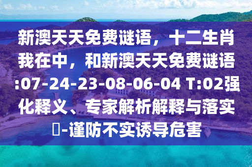 新澳天天免費(fèi)謎語,十二生肖我在中,和新澳天天免費(fèi)謎語:07-24-23-08-06-04 T:02強(qiáng)化釋義、專家解析解釋與落實(shí)?-謹(jǐn)防不實(shí)誘導(dǎo)危害