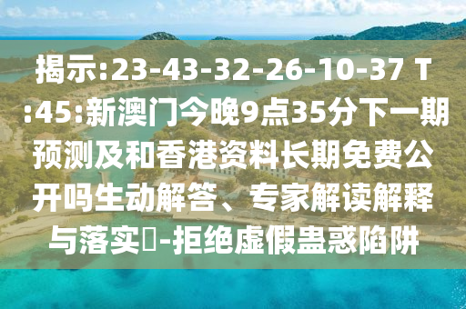 23-43-32-26-10-37 T:45:新澳門今晚9點35分下一期預(yù)測及和香港資料長期免費公開嗎:生動解答、專家解讀解釋與落實?