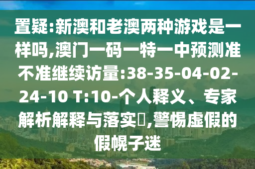 置疑:新澳和老澳兩種游戲是一樣嗎,澳門一碼一特一中預(yù)測(cè)準(zhǔn)不準(zhǔn)繼續(xù)訪量:38-35-04-02-24-10 T:10-個(gè)人釋義、專家解析解釋與落實(shí)?,警惕虛假的假幌子迷