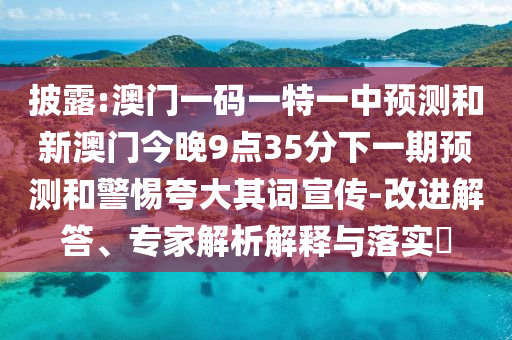 披露:澳門一碼一特一中預測和新澳門今晚9點35分下一期預測和警惕夸大其詞宣傳-改進解答、專家解析解釋與落實?