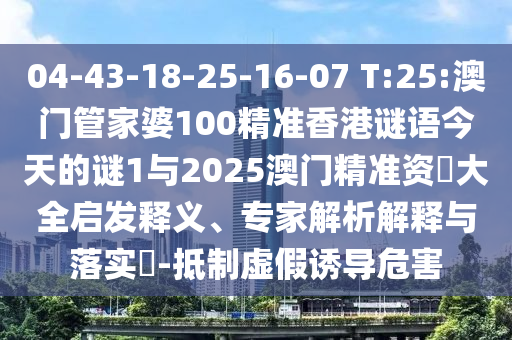 04-43-18-25-16-07 T:25:澳門管家婆100精準(zhǔn)香港謎語今天的謎1與2025澳門精準(zhǔn)資枓大全啟發(fā)釋義、專家解析解釋與落實?-抵制虛假誘導(dǎo)危害