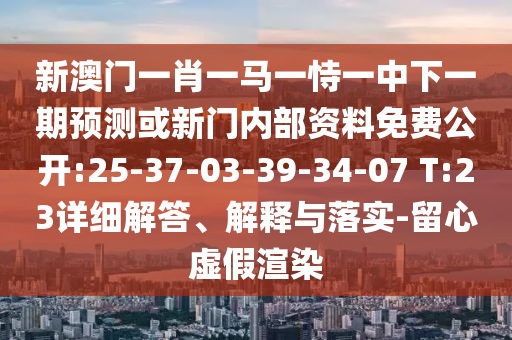 新澳門一肖一馬一恃一中下一期預測或新門內(nèi)部資料免費公開:25-37-03-39-34-07 T:23的詳細解答、解釋與落實