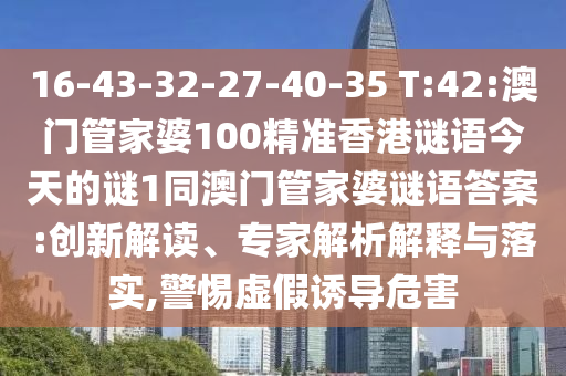 16-43-32-27-40-35 T:42:澳門管家婆100精準(zhǔn)香港謎語(yǔ)今天的謎1同澳門管家婆謎語(yǔ)答案的創(chuàng)新解讀、專家解析解釋與落實(shí)
