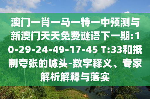 澳門一肖一馬一特一中預(yù)測與新澳門天天免費謎語下一期:10-29-24-49-17-45 T:33和抵制夸張的噱頭-數(shù)字釋義、專家解析解釋與落實