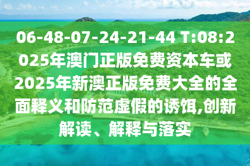 06-48-07-24-21-44 T:08:2025年澳門正版免費(fèi)資本車或2025年新澳正版免費(fèi)大全的全面釋義和防范虛假的誘餌,創(chuàng)新解讀、解釋與落實
