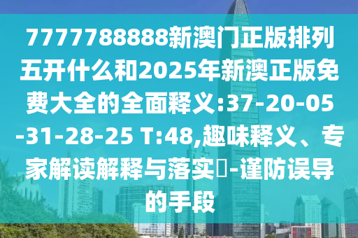 7777788888新澳門正版排列五開什么和2025年新澳正版免費(fèi)大全的全面釋義:37-20-05-31-28-25 T:48,趣味釋義、專家解讀解釋與落實(shí)?-謹(jǐn)防誤導(dǎo)的手段