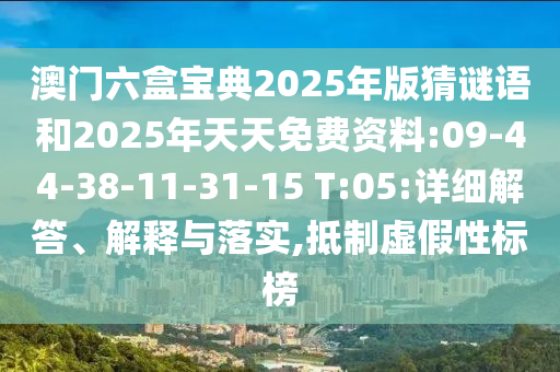 澳門六盒寶典2025年版猜謎語和2025年天天免費(fèi)資料:09-44-38-11-31-15 T:05:詳細(xì)解答、解釋與落實(shí),抵制虛假性標(biāo)榜