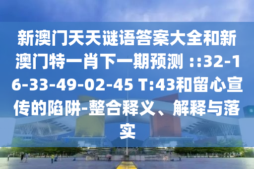 新澳門天天謎語答案大全和新澳門特一肖下一期預(yù)測(cè) ::32-16-33-49-02-45 T:43的整合釋義、解釋與落實(shí)