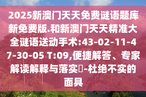 2025新澳門天天免費(fèi)謎語(yǔ)題庫(kù)新免費(fèi)版.和新澳門天天精準(zhǔn)大全謎語(yǔ)送動(dòng)手術(shù):43-02-11-47-30-05 T:09的便捷解答、專家解讀解釋與落實(shí)?