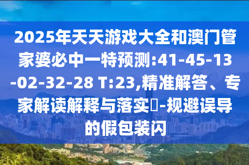 2025年天天游戲大全和澳門管家婆必中一特預(yù)測:41-45-13-02-32-28 T:23,精準(zhǔn)解答、專家解讀解釋與落實?-規(guī)避誤導(dǎo)的假包裝閃
