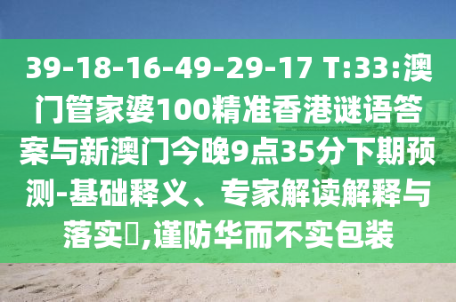 39-18-16-49-29-17 T:33:澳門(mén)管家婆100精準(zhǔn)香港謎語(yǔ)答案與新澳門(mén)今晚9點(diǎn)35分下期預(yù)測(cè)-基礎(chǔ)釋義、專(zhuān)家解讀解釋與落實(shí)?,謹(jǐn)防華而不實(shí)包裝