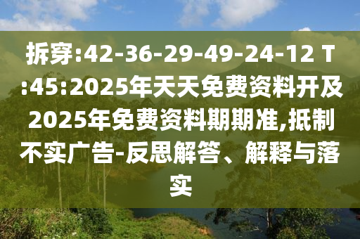 拆穿:42-36-29-49-24-12 T:45:2025年天天免費(fèi)資料開及2025年免費(fèi)資料期期準(zhǔn),抵制不實(shí)廣告-反思解答、解釋與落實(shí)