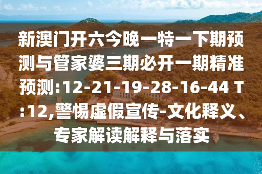新澳門開六今晚一特一下期預(yù)測(cè)與管家婆三期必開一期精準(zhǔn)預(yù)測(cè):12-21-19-28-16-44 T:12與警惕虛假宣傳的文化釋義、專家解讀解釋與落實(shí)的全面解析