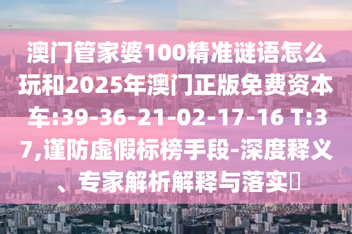 澳門管家婆100精準(zhǔn)謎語怎么玩和2025年澳門正版免費(fèi)資本車:39-36-21-02-17-16 T:37,謹(jǐn)防虛假標(biāo)榜手段-深度釋義、專家解析解釋與落實?