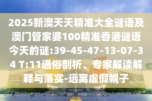 2025新澳天天精準(zhǔn)大全謎語及澳門管家婆100精準(zhǔn)香港謎語今天的謎:39-45-47-13-07-34 T:11通俗剖析、專家解讀解釋與落實(shí)-遠(yuǎn)離虛假幌子