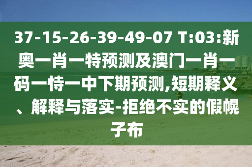 37-15-26-39-49-07 T:03:新奧一肖一特預(yù)測(cè)及澳門(mén)一肖一碼一恃一中下期預(yù)測(cè),短期釋義、解釋與落實(shí)-拒絕不實(shí)的假幌子布