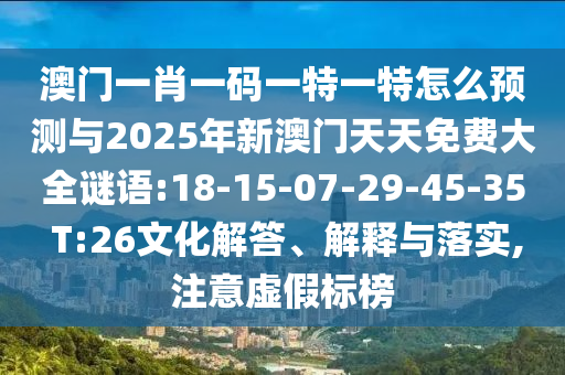 澳門一肖一碼一特一特怎么預(yù)測與2025年新澳門天天免費大全謎語:18-15-07-29-45-35 T:26文化解答、解釋與落實,注意虛假標榜
