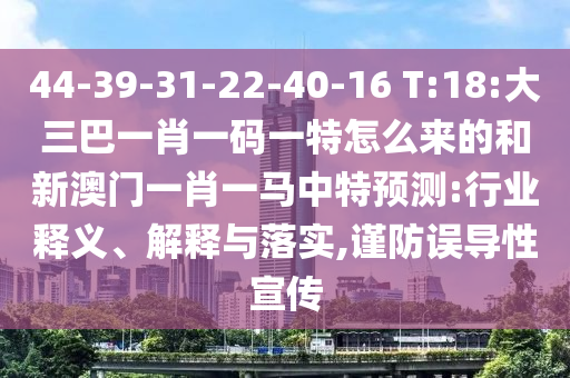 44-39-31-22-40-16 T:18:大三巴一肖一碼一特怎么來(lái)的和新澳門一肖一馬中特預(yù)測(cè):行業(yè)釋義、解釋與落實(shí),謹(jǐn)防誤導(dǎo)性宣傳