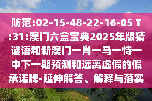 防范:02-15-48-22-16-05 T:31:澳門六盒寶典2025年版猜謎語和新澳門一肖一馬一恃一中下一期預(yù)測和遠(yuǎn)離虛假的假承諾牌-延伸解答、解釋與落實(shí)