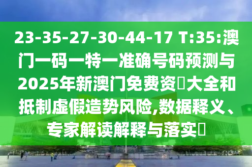 23-35-27-30-44-17 T:35:澳門一碼一特一準(zhǔn)確號(hào)碼預(yù)測(cè)與2025年新澳門免費(fèi)資枓大全的數(shù)據(jù)釋義、專家解讀解釋與落實(shí)?