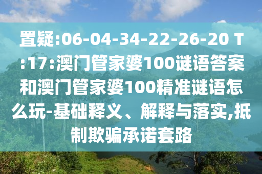 置疑:06-04-34-22-26-20 T:17:澳門管家婆100謎語答案和澳門管家婆100精準(zhǔn)謎語怎么玩-基礎(chǔ)釋義、解釋與落實(shí),抵制欺騙承諾套路
