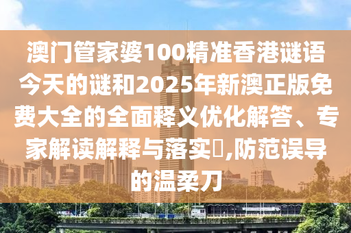 澳門管家婆100精準香港謎語今天的謎和2025年新澳正版免費大全的全面釋義優(yōu)化解答、專家解讀解釋與落實?,防范誤導的溫柔刀