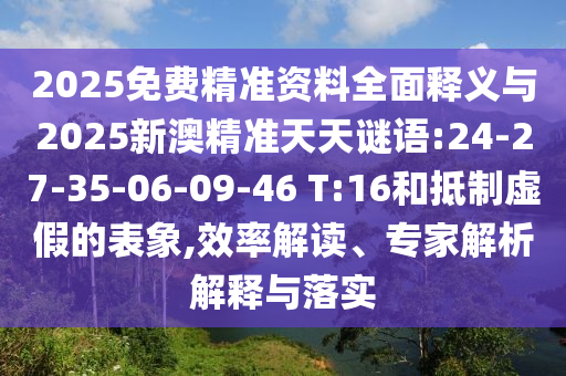 2025免費(fèi)精準(zhǔn)資料全面釋義與2025新澳精準(zhǔn)天天謎語:24-27-35-06-09-46 T:16和抵制虛假的表象,效率解讀、專家解析解釋與落實(shí)