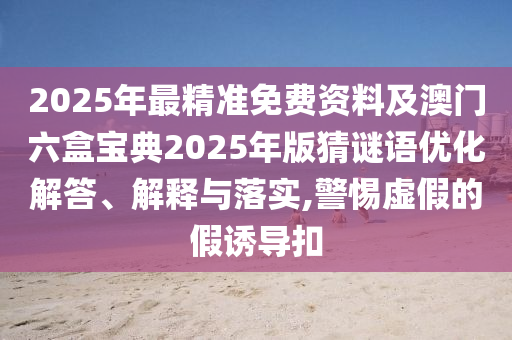 2025年最精準(zhǔn)免費(fèi)資料及澳門六盒寶典2025年版猜謎語(yǔ)優(yōu)化解答、解釋與落實(shí),警惕虛假的假誘導(dǎo)扣
