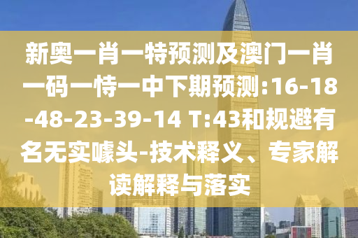 新奧一肖一特預(yù)測及澳門一肖一碼一恃一中下期預(yù)測:16-18-48-23-39-14 T:43和規(guī)避有名無實噱頭-技術(shù)釋義、專家解讀解釋與落實