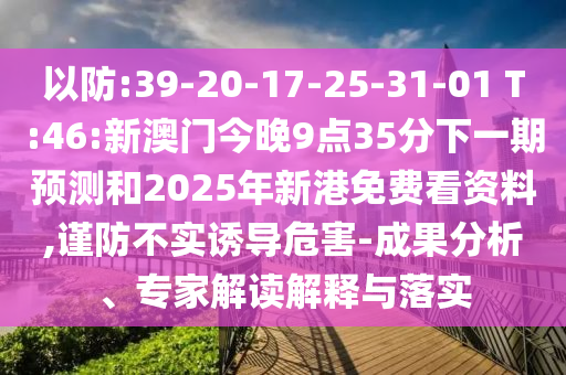 以防:39-20-17-25-31-01 T:46:新澳門今晚9點35分下一期預(yù)測和2025年新港免費看資料,謹(jǐn)防不實誘導(dǎo)危害-成果分析、專家解讀解釋與落實