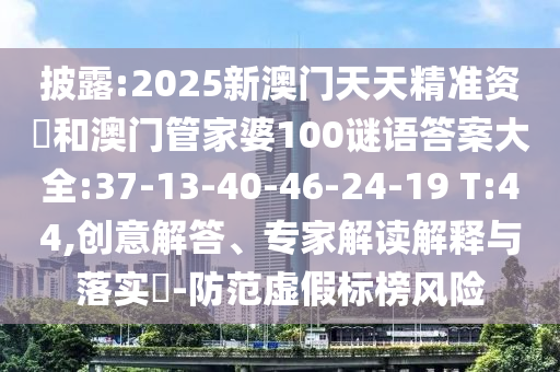 2025新澳門天天精準資枓和澳門管家婆100謎語答案大全:37-13-40-46-24-19 T:44的創(chuàng)意解答、專家解讀解釋與落實?