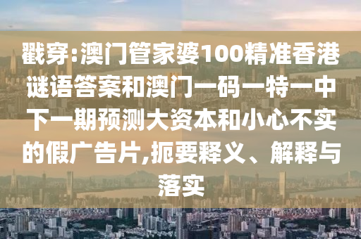 戳穿:澳門管家婆100精準香港謎語答案和澳門一碼一特一中下一期預測大資本和小心不實的假廣告片,扼要釋義、解釋與落實