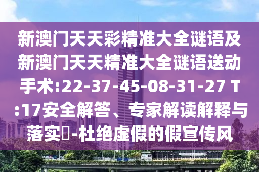 新澳門天天彩精準大全謎語及新澳門天天精準大全謎語送動手術:22-37-45-08-31-27 T:17安全解答、專家解讀解釋與落實?-杜絕虛假的假宣傳風