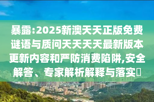 “暴露:2025新澳天天正版免費(fèi)謎語與質(zhì)問天天天天最新版本更新內(nèi)容”這一關(guān)鍵詞涉及多個(gè)方面,我們需要從全面釋義、專家解讀與落實(shí)、警惕消費(fèi)陷阱等方面進(jìn)行深入理解和分析,我們也要保持警惕,確保自身權(quán)益不受侵害。