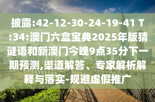 42-12-30-24-19-41 T:34:澳門(mén)六盒寶典2025年版猜謎語(yǔ)和新澳門(mén)今晚9點(diǎn)35分下一期預(yù)測(cè):渠道解答、專(zhuān)家解析解釋與落實(shí)