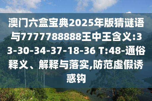澳門(mén)六盒寶典2025年版猜謎語(yǔ)與7777788888王中王含義:33-30-34-37-18-36 T:48-通俗釋義、解釋與落實(shí),防范虛假誘惑鉤
