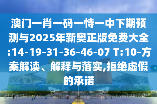 澳門一肖一碼一恃一中下期預(yù)測與2025年新奧正版免費大全:14-19-31-36-46-07 T:10-方案解讀、解釋與落實,拒絕虛假的承諾