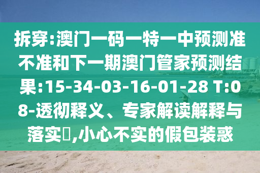 拆穿:澳門一碼一特一中預(yù)測(cè)準(zhǔn)不準(zhǔn)和下一期澳門管家預(yù)測(cè)結(jié)果:15-34-03-16-01-28 T:08-透徹釋義、專家解讀解釋與落實(shí)?,小心不實(shí)的假包裝惑