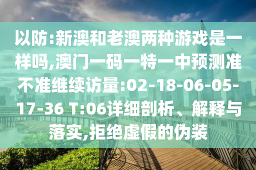 關(guān)于關(guān)鍵詞“以防:新澳和老澳兩種游戲是否一樣,澳門一碼一特一中預(yù)測準不準,繼續(xù)訪量:02-18-06-05-17-36 T:06”的詳細剖析、解釋與落實,并警惕虛假宣傳
