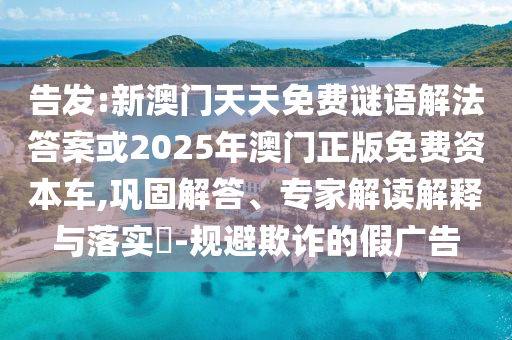 告發(fā):新澳門天天免費(fèi)謎語(yǔ)解法答案或2025年澳門正版免費(fèi)資本車,鞏固解答、專家解讀解釋與落實(shí)?-規(guī)避欺詐的假?gòu)V告