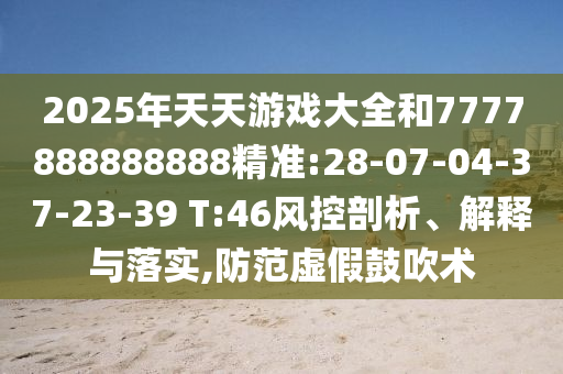 2025年天天游戲大全和7777888888888精準:28-07-04-37-23-39 T:46與防范虛假鼓吹術——風控剖析、解釋與落實”的全面解讀