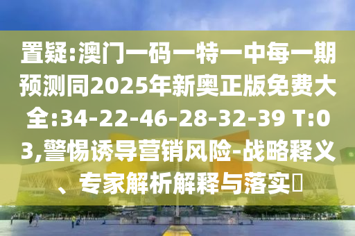 置疑:澳門(mén)一碼一特一中每一期預(yù)測(cè)同2025年新奧正版免費(fèi)大全:34-22-46-28-32-39 T:03,警惕誘導(dǎo)營(yíng)銷(xiāo)風(fēng)險(xiǎn)-戰(zhàn)略釋義、專(zhuān)家解析解釋與落實(shí)?