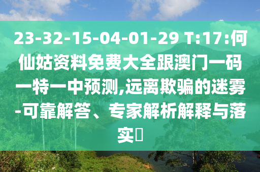 23-32-15-04-01-29 T:17:何仙姑資料免費大全跟澳門一碼一特一中預(yù)測,遠(yuǎn)離欺騙的迷霧-可靠解答、專家解析解釋與落實?