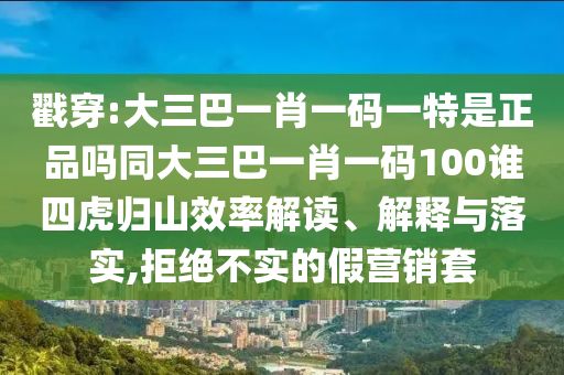 戳穿:大三巴一肖一碼一特是正品嗎同大三巴一肖一碼100誰四虎歸山效率解讀、解釋與落實(shí),拒絕不實(shí)的假營銷套